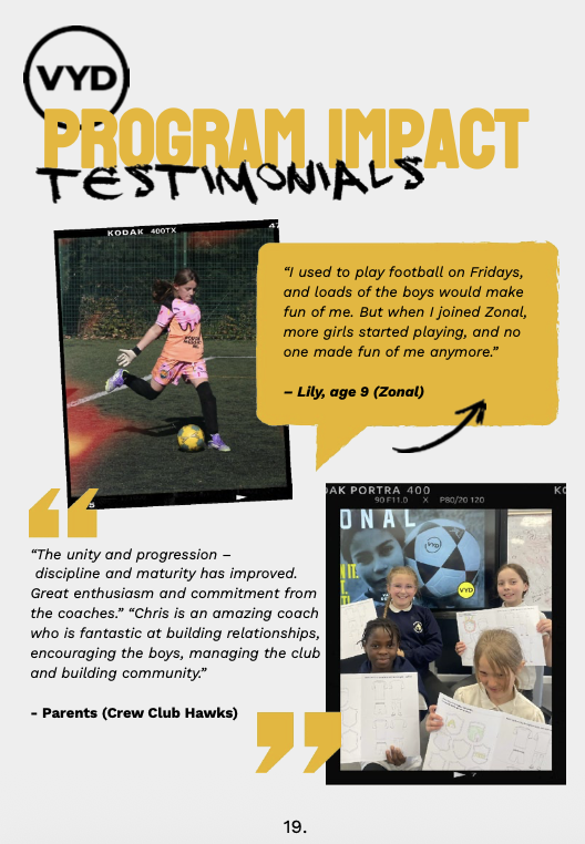 This report is more than numbers on pages. It’s proof of what can happen when people are seen, backed, and given space to belong. It’s a record of trust built slowly. It’s evidence that football, when done differently, can change lives. It also has a couple of (design) errors, but we thought hey, we’re not perfect and we can’t afford another iteration on the design, so here it is, warts and all…